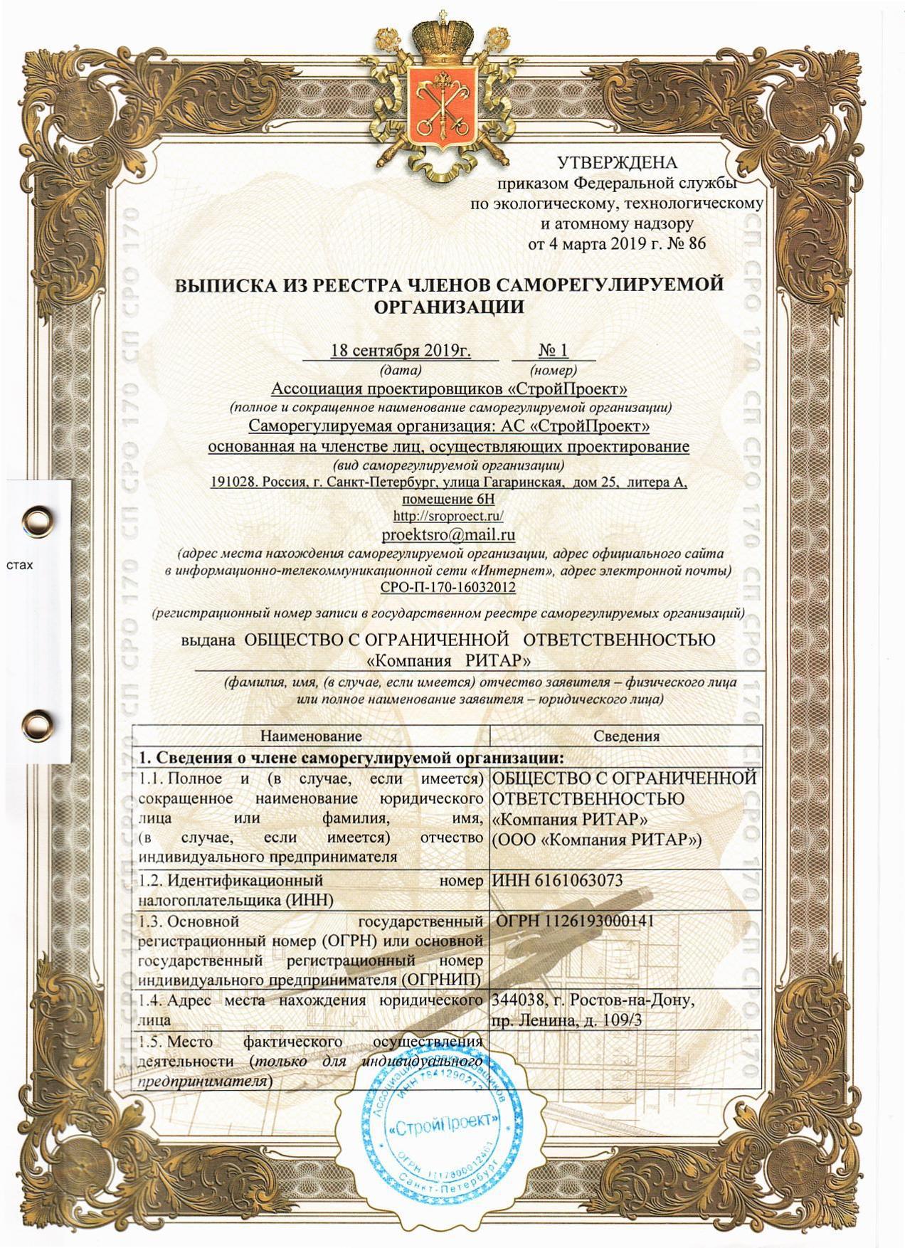 ООО «Компания РИТАР» располагает необходимыми разрешительными документами для выполнения строительно-монтажных, проектных и специализированных работ на объектах капитального строительства: