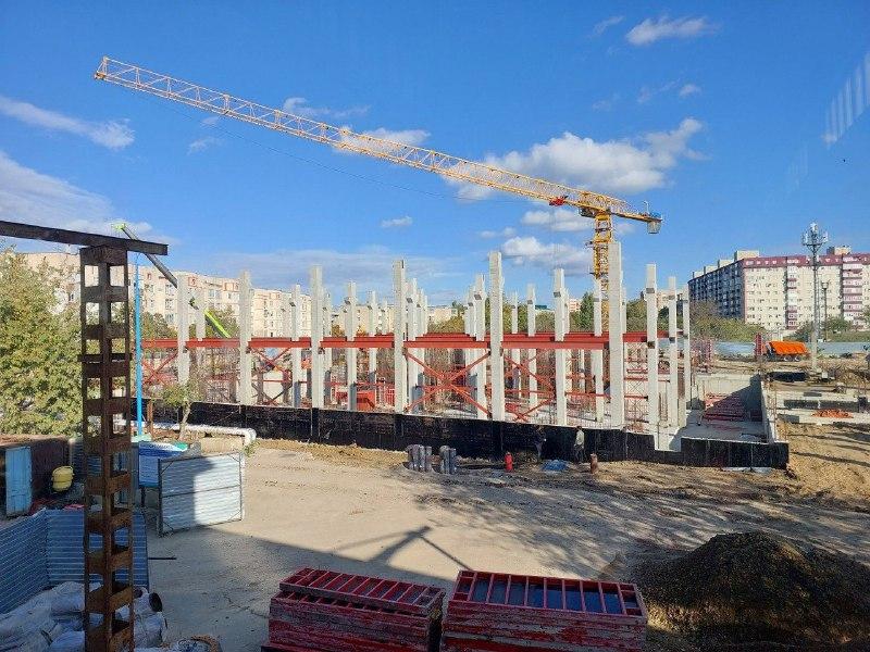 Комплекс строительно-монтажных работ при строительстве физкультурно-оздоровительного комплекса, включая устройство фундаментных плит, железобетонных конструкций, стен, колонн, лестничных клеток и плит перекрытий, устройство пандуса и выполнение отделочных работ